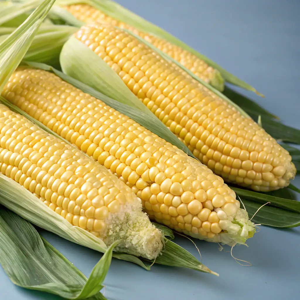 Sweet corn on the cob with bright yellow kernels, freshly harvested and ready to cook. The husks are partially peeled back to reveal plump, juicy kernels that are perfect for grilling, boiling, or roasting. Sourced from local farms dedicated to providing fresh, high-quality produce.
